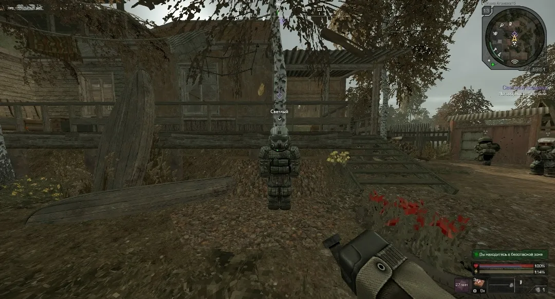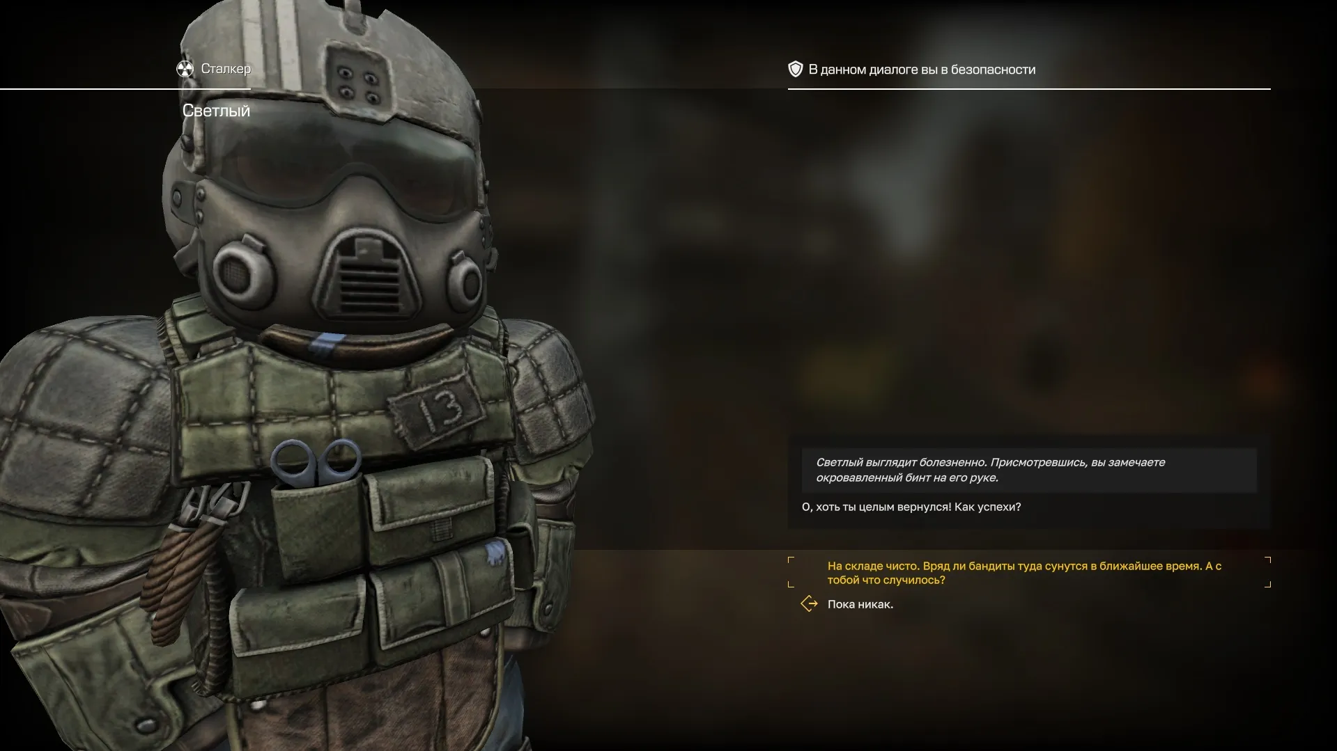 После выполнения задания возвращаемся к Светлому. Однако он снова отправляет нас на бой с бандитами — теперь уже в его схроне. Здесь нужно уничтожить шестерых противников. Сложностей быть не должно, но при желании можно заранее купить гранаты у торговца.