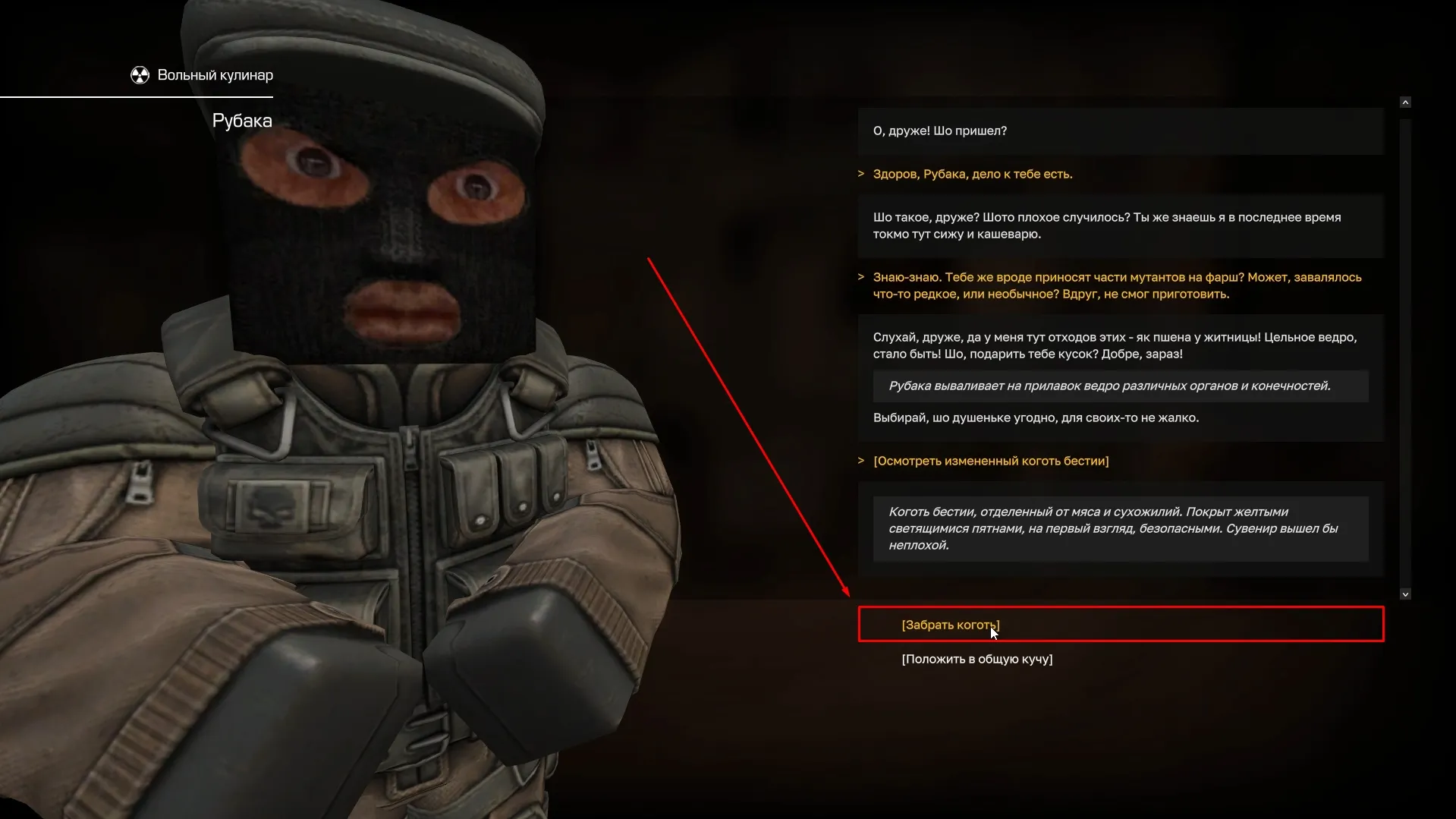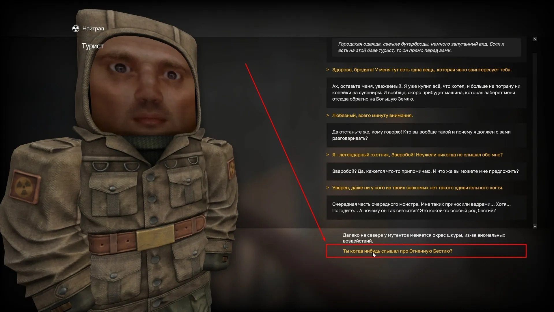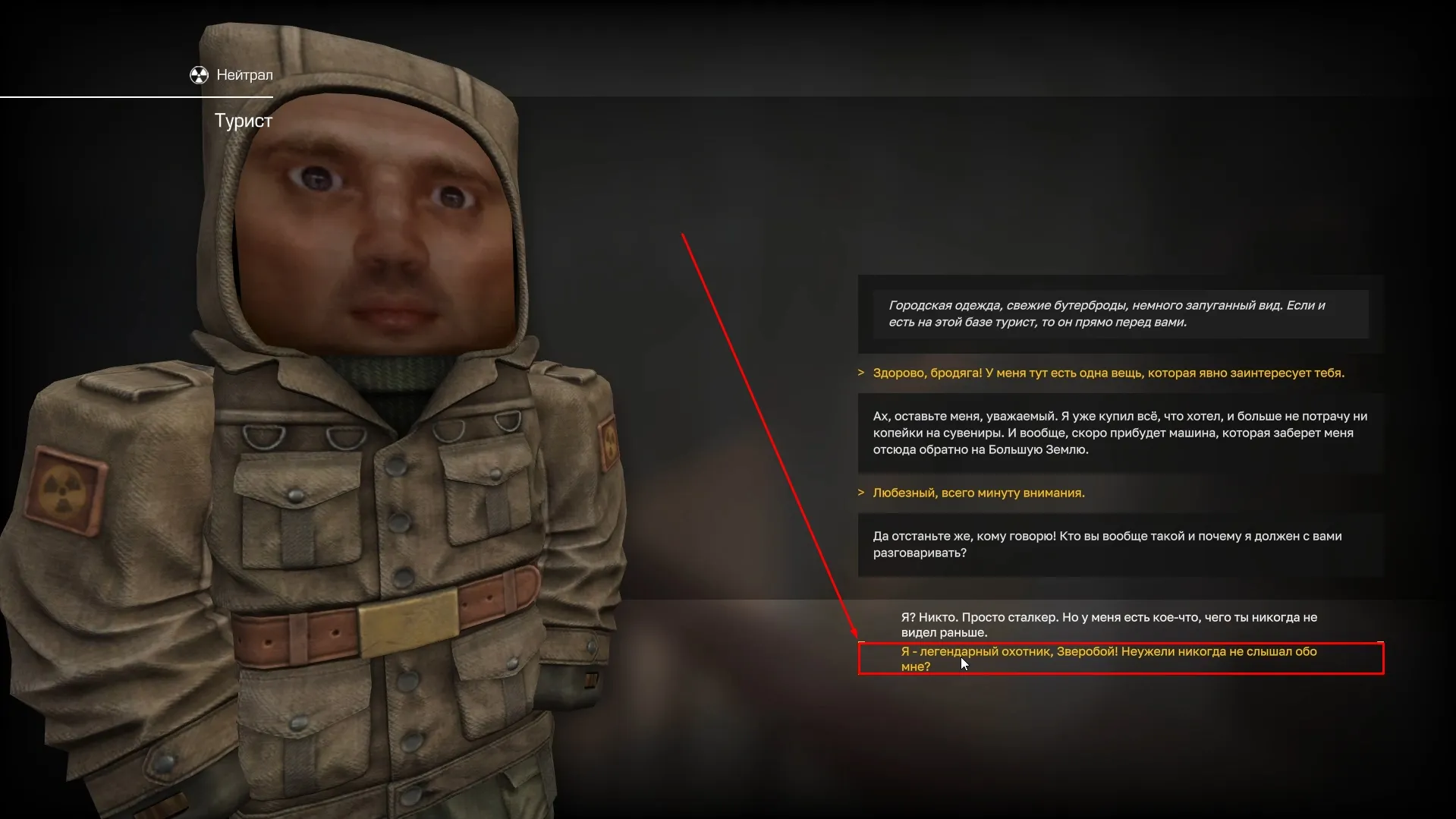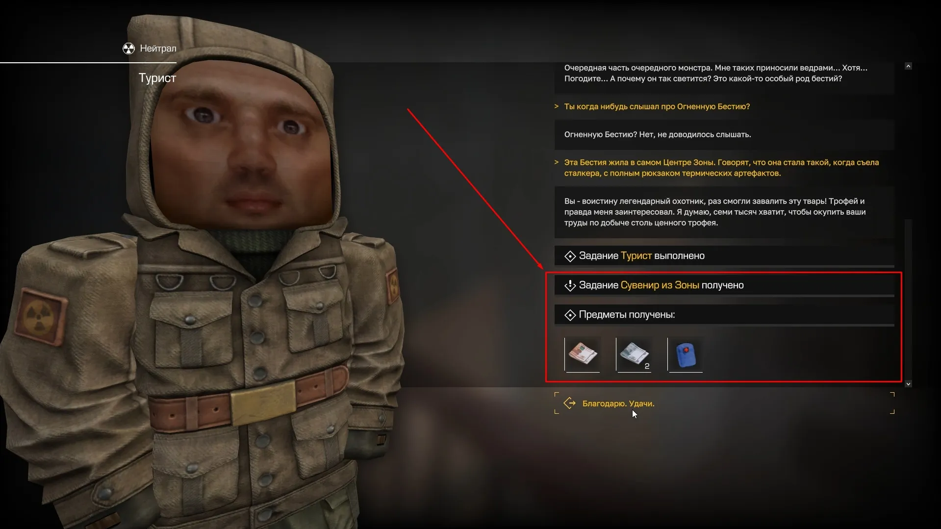 Монета выдает небольшую награду и поручает продать туристу на Обочине трофей мутанта. Помочь в этом могут диггеры.