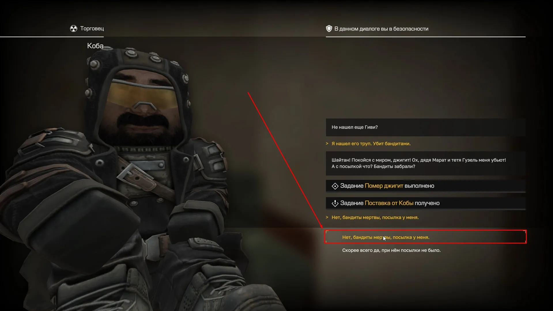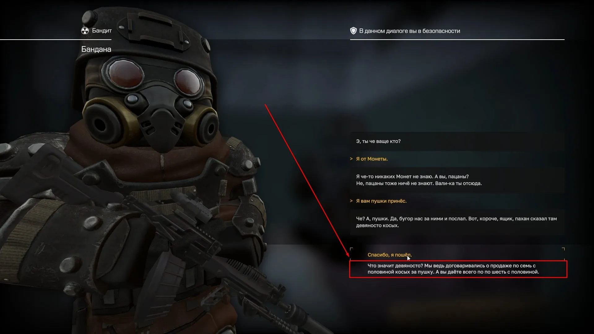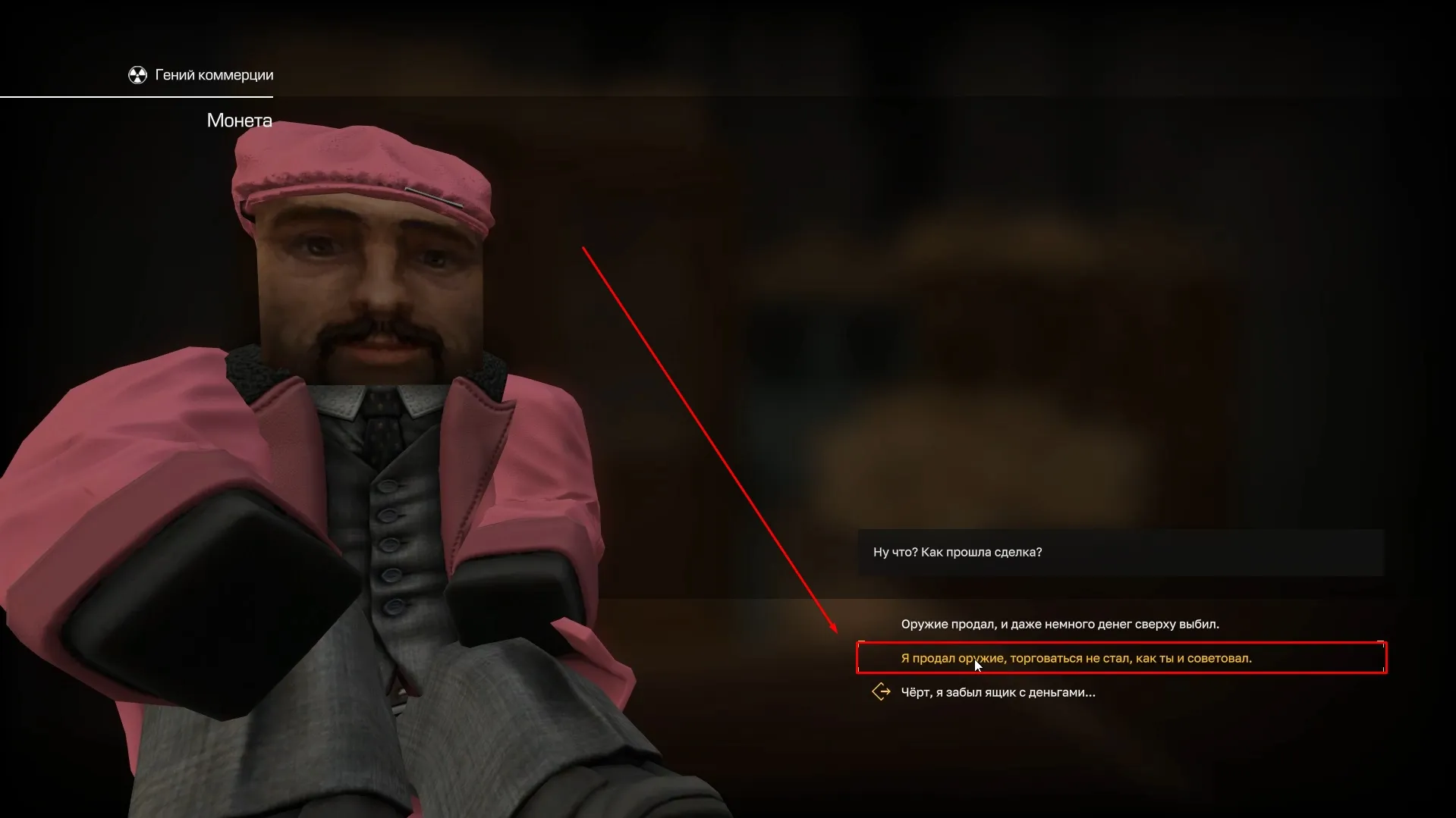 Собрав и отдав предметы, Монета вручает нам кейс с “улучшенной” Свечой. Отправляемся к покупателю в Баре — и снова выбираем нужные диалоги для лучшего исхода.