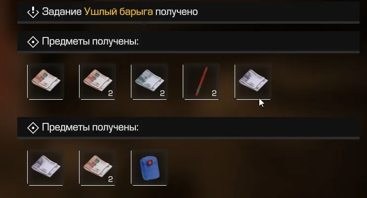 После сделки получаем 2500 рублей, возвращаемся к Монете и не упоминаем о дополнительном заработке. Он выдает награду и поручает отыскать предметы из прикопов, чтобы продать бракованный детектор.
