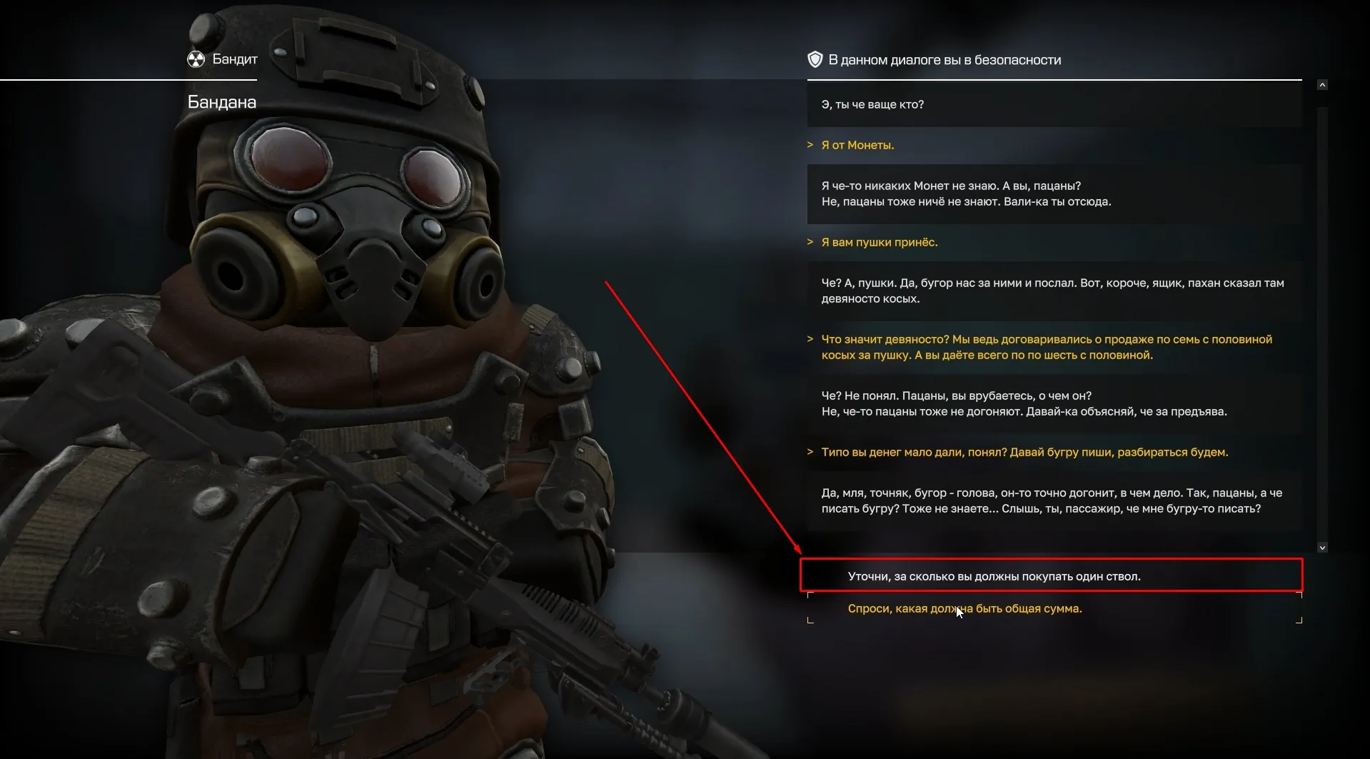 Теперь он поручает продать ящик оружия бандитам под предводительством Банданы на Пути Дураков. Важно снова выбрать правильные реплики, чтобы получить максимальную награду.