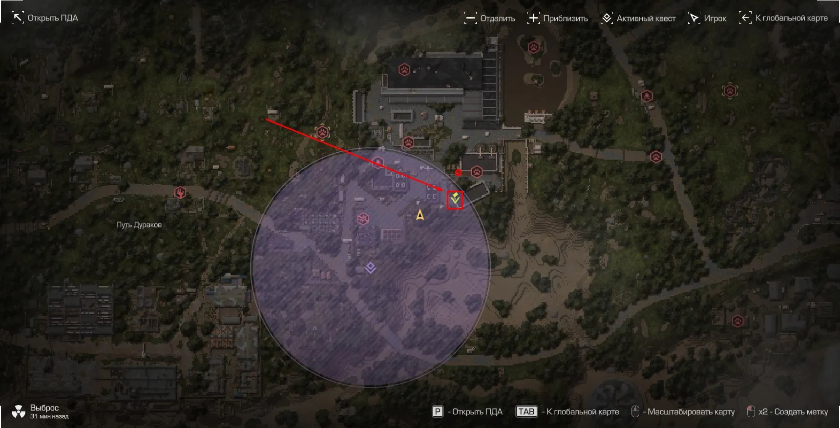 Зайдя в аномалию, мы оказываемся на Свалке техники и находим шкатулку. Колбаскин по нашему возвращению признает, что он и есть Зрячий и единственная причина почему он в Зоне это найти сына. Получаем последнюю награду.