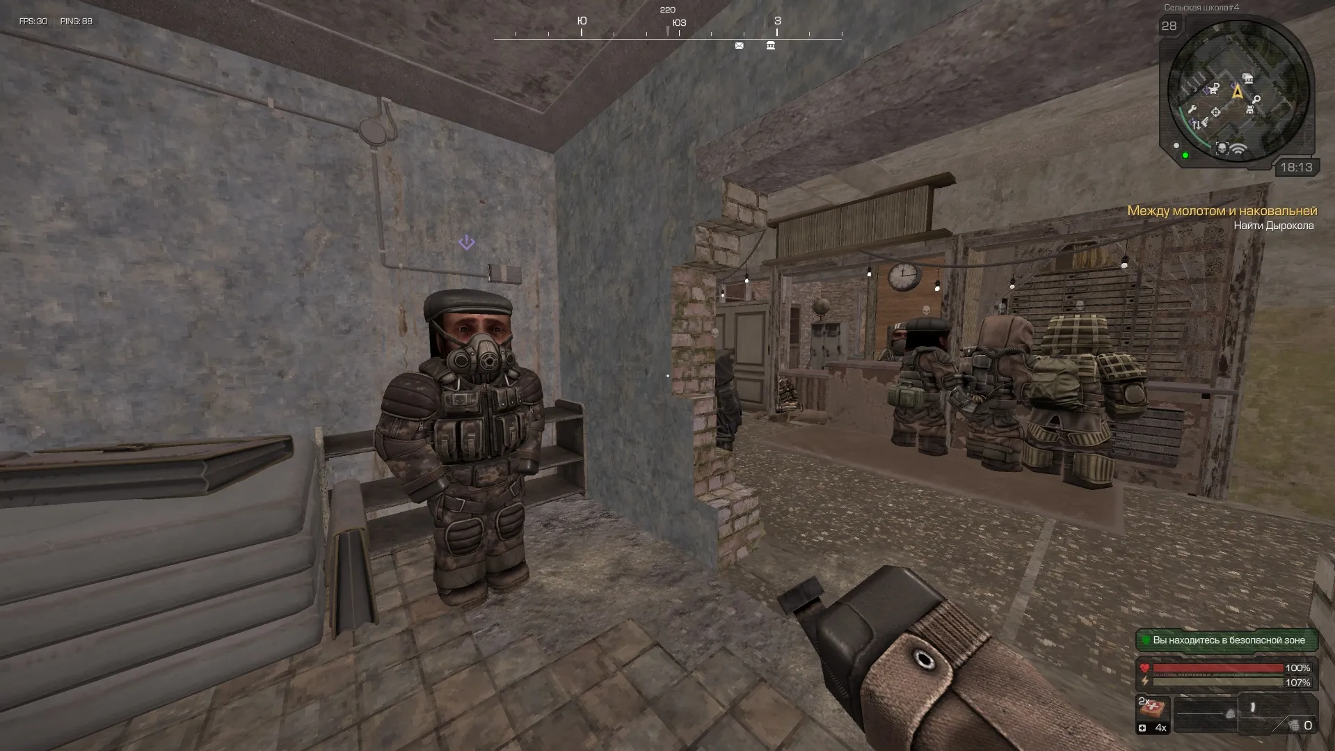 Начало задания берется у бандита Ровного или сталкера Штиблета, которые находится в безопасной зоне Обочины. Они работает курьерами, но их подстрелили и нам нужно доставить синий и красный конверты.