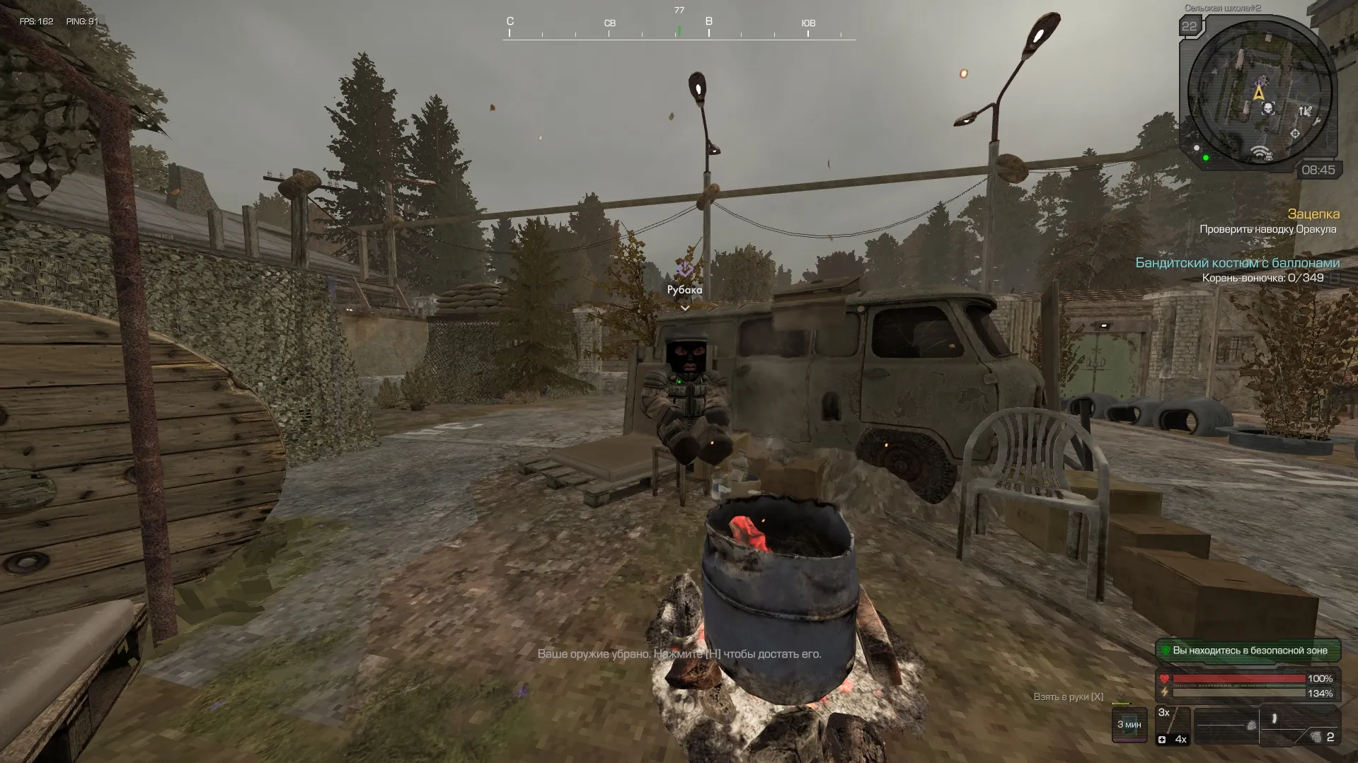 Начало задания берется у Рубаки. Мужчина будет сидеть у костра в Пожарной станции или Сельской школе в зависимости от фракции. Рубака — повар и его продуктами является мутанты. Он дает нам задание принести 4 собачей печенки.