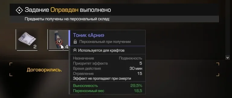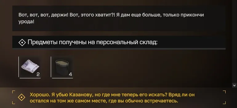 Оправдав Сохатого, мы получаем 2 небольших наградах и просьбу отнести письмо его знакомому Казанове, который передаст его возлюбленной Сохатого.