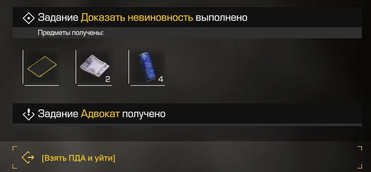 Начало задания берется у сталкера Правдина. Некий Сохатый убил своего напарника, и они собираются его судить, но Сохатый рассказывает нам, что на его напали первым из-за женщины, которую они на двоих любили с покойным. Он просит найти ПДА Гривцова в его тайнике с док-вами.