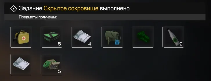 - 💵 Основная награда — 5 стандартных запчастей и инструментов, 5000 рублей, Кисель, 20 репутации.
