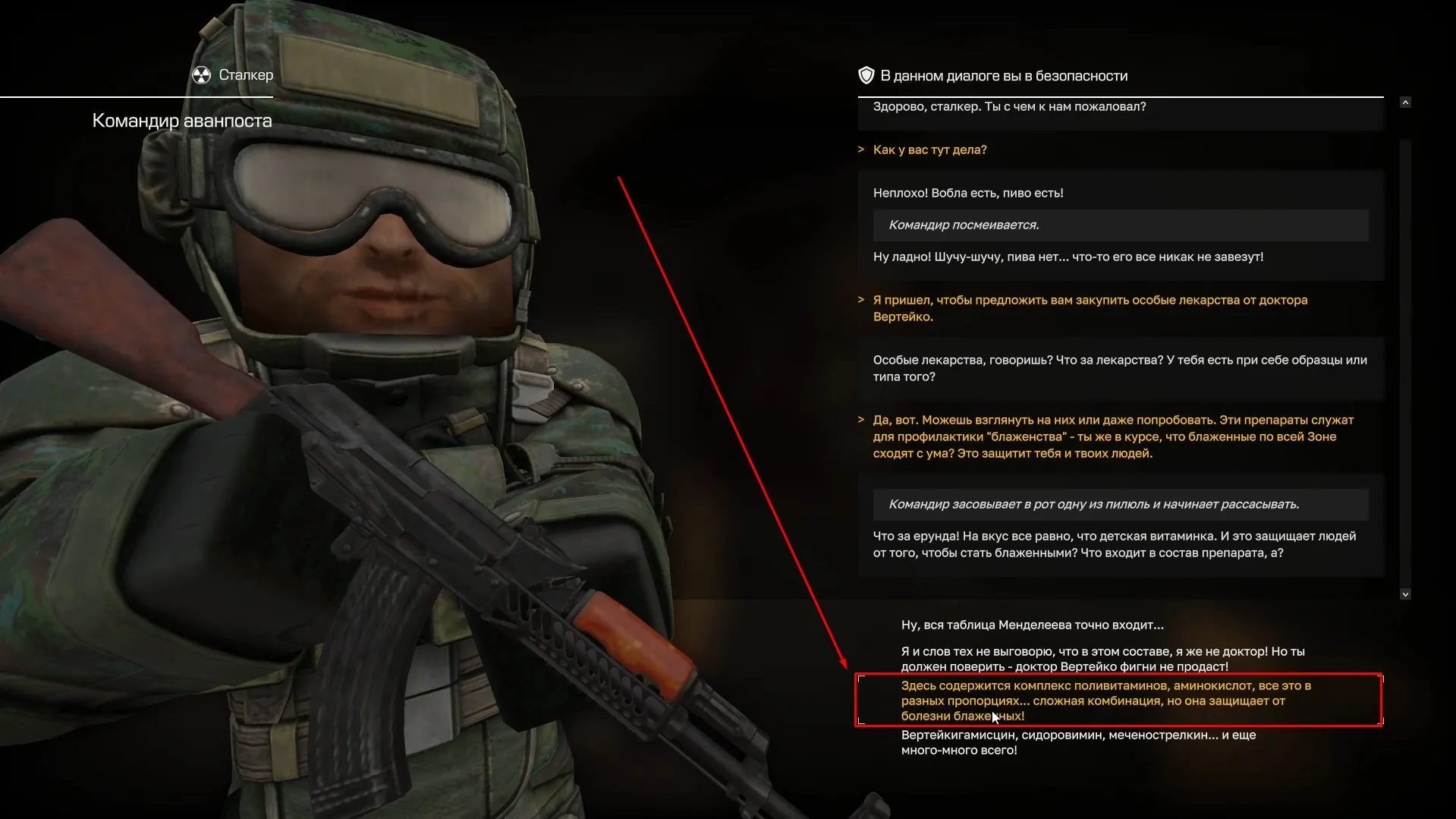 После того, как вы отнесли все пилюли командирам, возвращаемся к Доктору Вертейко и получаем свою награду.