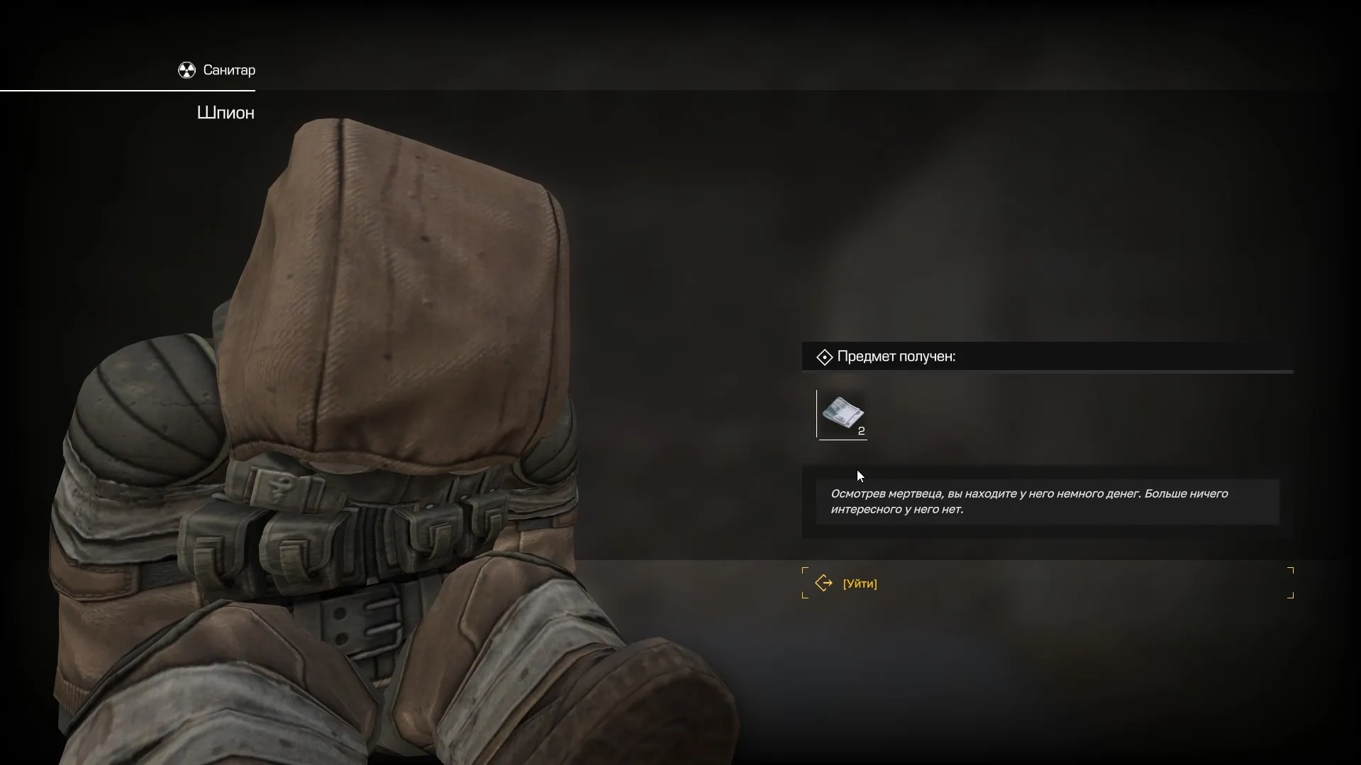 Кутузов оплачивает нам издержки и дает новое поручение: найти его тайники и принести все вещи из них для борьбы с Санитарами.
