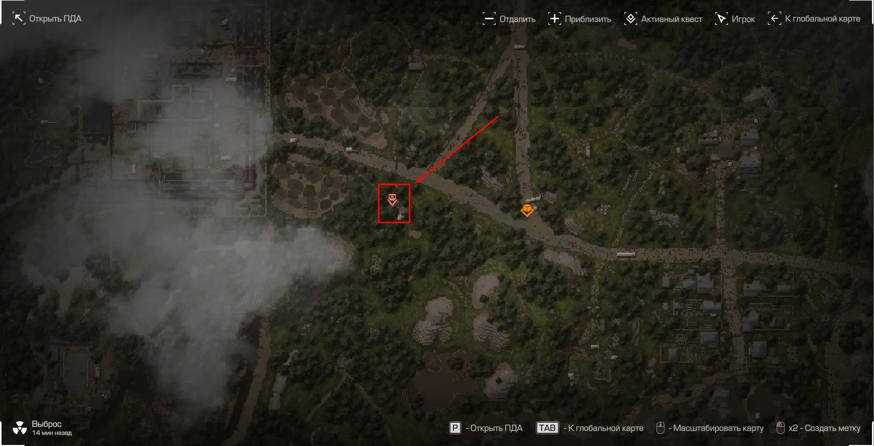 Марафонец — парализованный сталкер после попадания в «Разряд». Он просит нас найти свою нычку, в которой могут быть средства, чтобы оплатить доктора.
